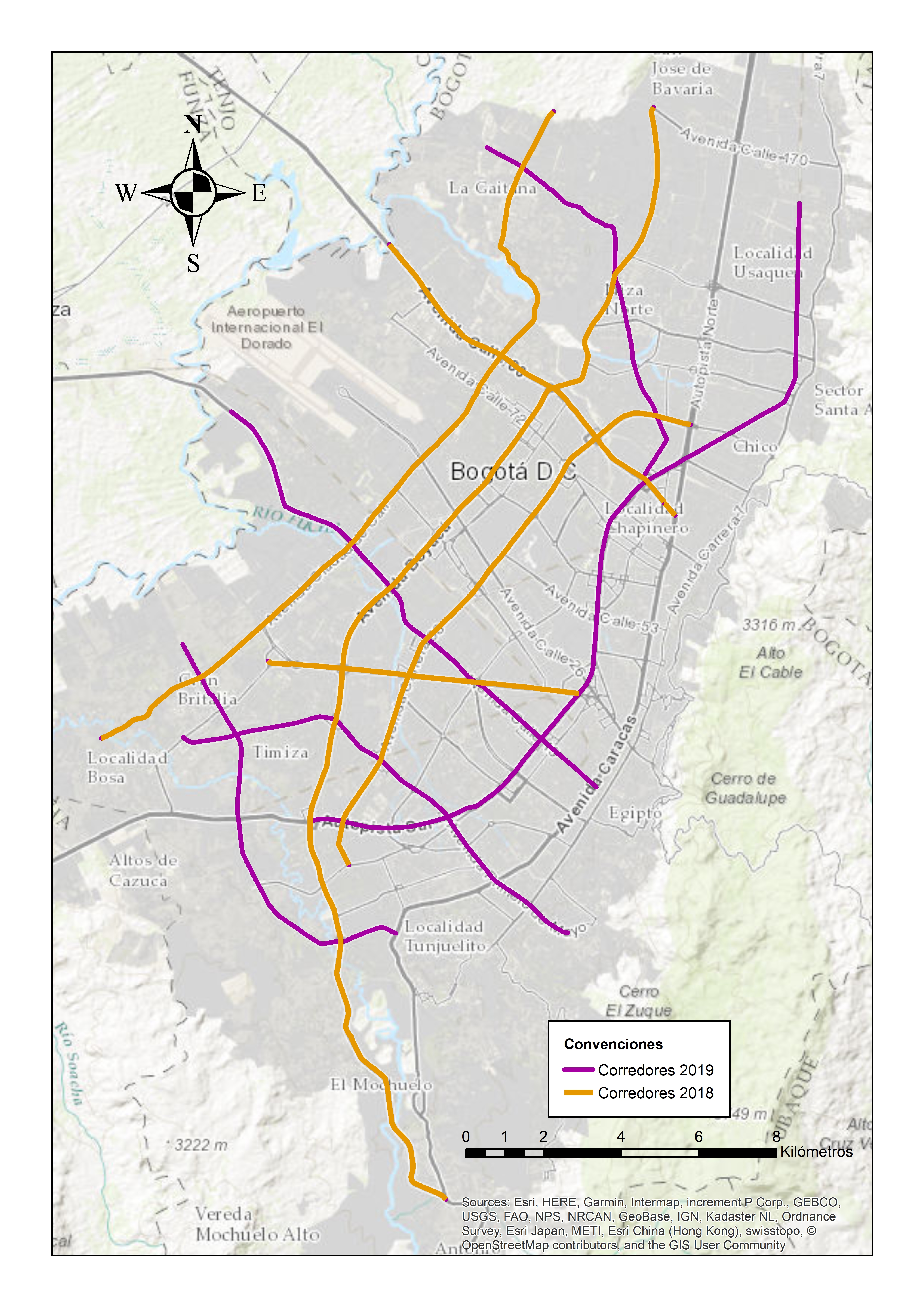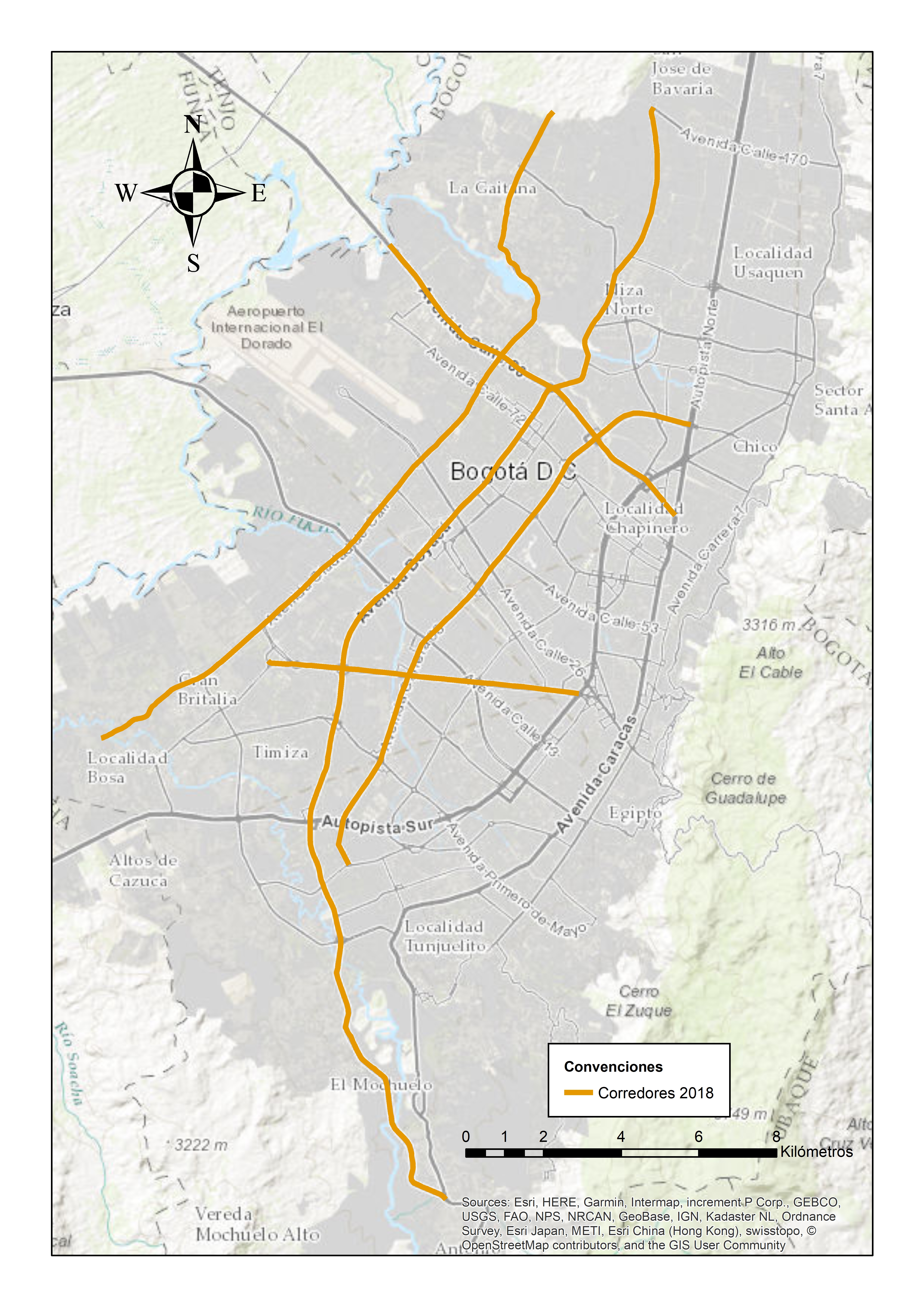 Arterial roads selected for new speed limit of 50km/h in 2018 and 2019 in Bogotá: