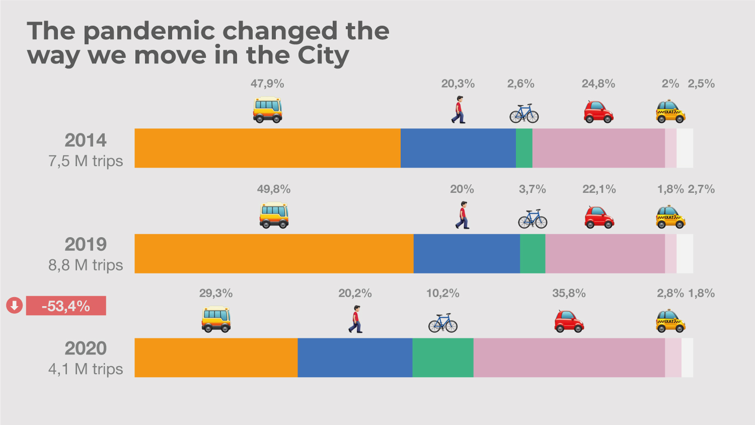 The year 2020 made us rethink the kind of city we wanted to have once the pandemic was over. The limitations imposed on us by the virus forced us to implement previously unthinkable mobility scenarios. Transport was only available for some workers, we closed some subway stations to encourage short trips on foot, and we encouraged the use of private vehicles for those who could use them. Like any other place in the world, the movement of people and goods became extremely difficult.